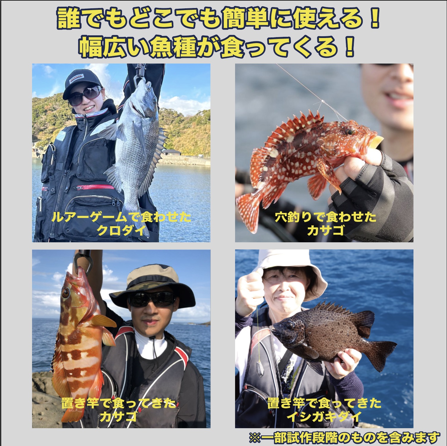 ■魚が好むカキやカニ殻、アミノ酸をふんだんに混ぜた釣りエサで、ワームのようでワームではない、けれどもワームのようにご使用いただける革新的な製品です。